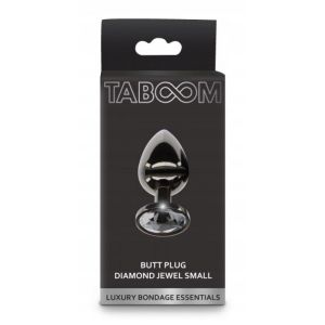 Анальна пробка із кристалом, S, Taboom, метал, чорна