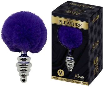 Анальна рельєфна пробка Alive Anal Pleasure з темно-фіолетовим хвостом, М