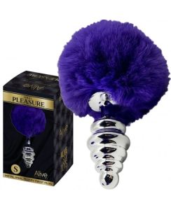Анальна рельєфна пробка Alive Anal Pleasure з темно-фіолетовим хвостом, S