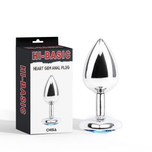 Анальна пробка Chisa HI-BASIC з блакитним каменем у вигляді серця