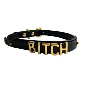 Чокер з написом BITCH від UPKO з італійської шкіри, чорний із золотою фурнітурою, One Size