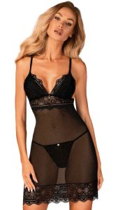 Пеньюар напівпрозорий з мереживними вставками Obsessive Reneliai та стрінги, S/M