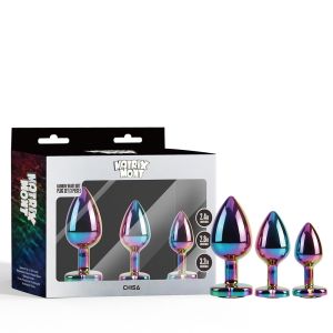 Набір анальних пробок різнокольорові CHISA MATRIX MONT з різнокольоровим каменем у формі серця, 3 шт. — стильний комплект інтимних аксесуарів, що поєднує естетику, комфорт і різноманітну стимуляцію. Три пробки різного розміру дозволяють поступово збільшувати інтенсивність відчуттів та підбирати оптимальний варіант для індивідуального рівня досвіду.