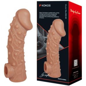 Насадка на пеніс з отвором для мошонки Kokos 15,6 см. CS 002-M — це практичний аксесуар для інтимного життя, який допоможе зробити близькість більш тривалою та насиченою. Завдяки спеціальній утяжці на мошонку виріб забезпечує щільну фіксацію та комфорт під час використання.