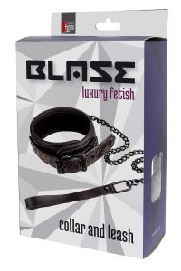 Нашийник з повідцем з фіолетовим тисненням Dream toys BLAZE Luxury Fetish на ланцюжку чорного кольору