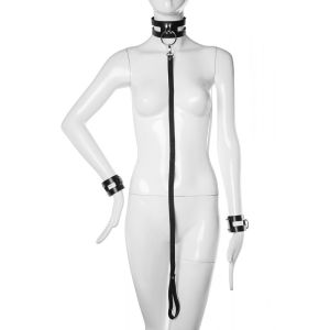 Нашийник з повідцем та наручниками Candy Hero Fet25 натуральна шкіра, чорні, XS-M