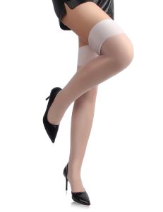 Високоякісний матеріал (нейлон і спандекс) забезпечує відмінну еластичність, приємне відчуття на шкірі та надійну посадку без передавлювання. Широка гумка на верхньому краї дозволяє панчохам залишатися на місці протягом усього дня.