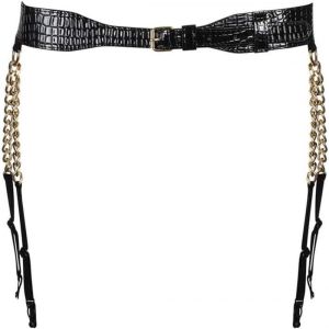Пояс для панчіх з ланцюгами Obsessive A767 XL/XXL Пояс для панчіх із ланцюгами золотистого кольору Obsessive A767 чорний, XL/XXL