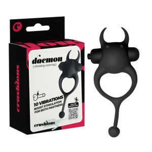 Віброкільце CRUSHIOUS Daemon з ріжками і хвостиком, 10 режимів, чорне