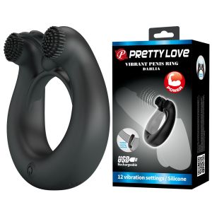 Віброкільце зі стимулюючими виступами Pretty Love Dahlia та вушками, чорне