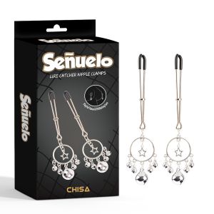 Затискачі на соски CHISA Senuelo Lure Catcher Nipple Clamps з намистинами — стильний еротичний аксесуар, створений для посилення чутливості та додавання нових відчуттів у ваші інтимні ігри. Елегантний сріблястий дизайн з декоративними намистинами та зіркою робить цей аксесуар не лише функціональним, а й ефектним елементом еротичного образу.