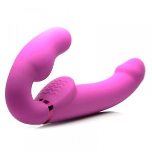 Страпон безремневой с вибрацией и накачкой Strap U с дистанционным пультом, розовый, 24.1 х 3.8 см