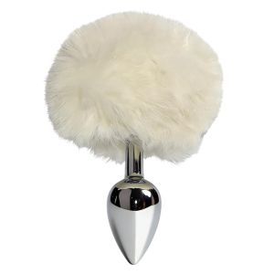 Анальная пробка ALUME, S, металлическая серебристая с белым пушком, 7 х 2,8 см