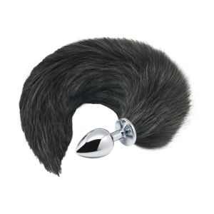 Анальная пробка лисий хвост Alive, L, черный, серебристая, 9 х 4,1 см