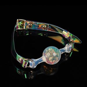 Кляп-шарик прозрачный UNIVIBE с разноцветным камнем, силиконовый