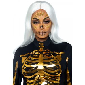 Маска скелета из страз и блестящих камней Leg Avenue золотая