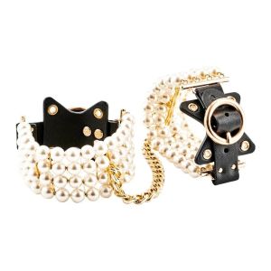 Наручники Guilty Pleasure Allure с жемчугом, черно-золотые