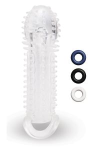 Насадка на пенис с рельефом Size-Up с 3 кольцами, прозрачная, 15.5 см
