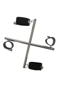 Система состоит из двух прочных металлических перекладин, формирующих перекрестную основу. На концах размещены манжеты из кожзама, которые прилегают к телу и не создают дискомфорта при правильном использовании. Благодаря регулируемому размеру манжеты можно подстроить под индивидуальные параметры, а застежки с навесными замочками придают ощущение надежной фиксации и усиливают атмосферу игры.